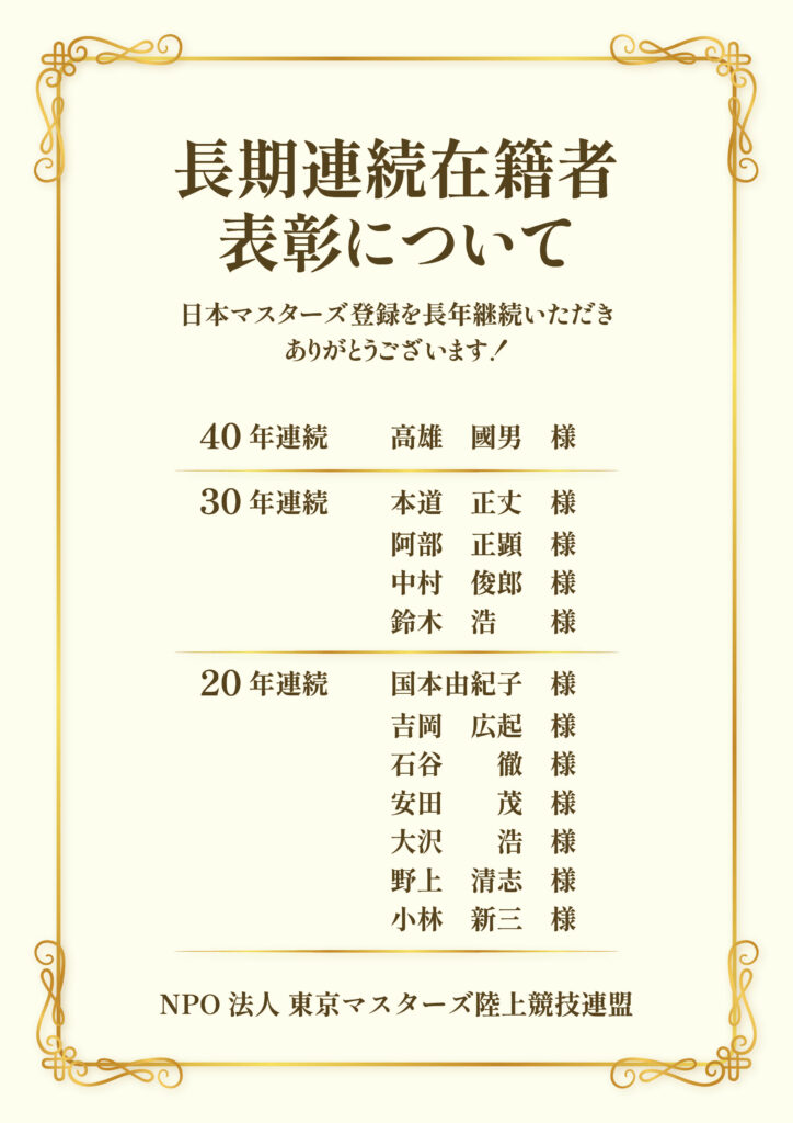 日本マスターズ登録を長年継続いただきありがとうございます!